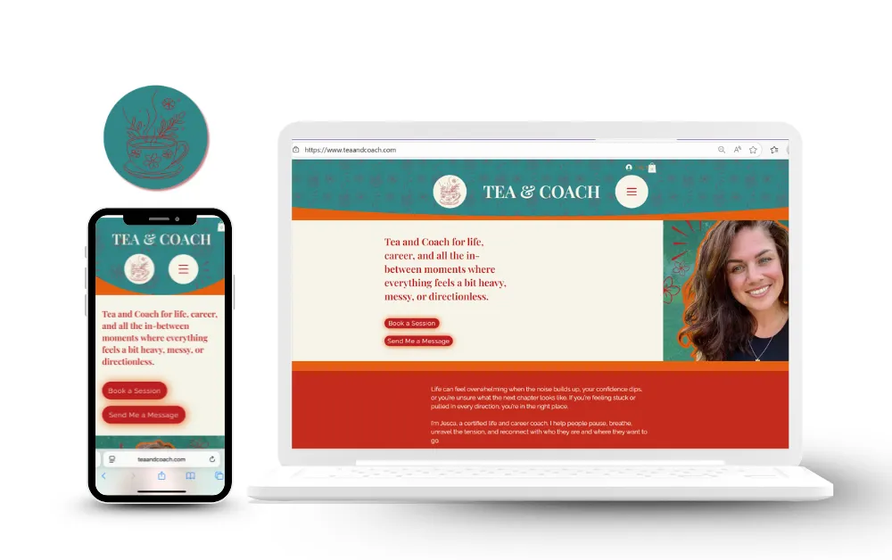 A warm, uplifting brand and website for Jesca, designed to reflect her natural vibrancy and supportive coaching style. I created a soft, spacious look that gently guides visitors through her approach and makes it easy to explore her services or book a session.