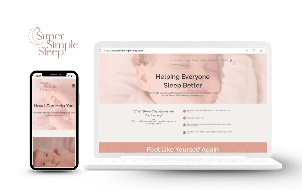 A friendly and clear site for a certified baby and toddler sleep coach, aimed at tired parents looking for support. I created a soft, approachable design that builds trust and makes it easy to book services or access free resources.